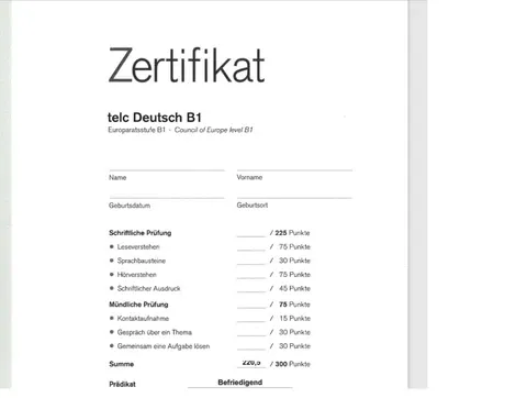Po zdaniu egzaminu TELC otrzymuje się certyfikat potwierdzający znajomość języka wraz z oceną z egzaminu. Certyfikaty są drukowane i przysyłane z Centralnego Biura Egzaminacyjnego z Niemiec.